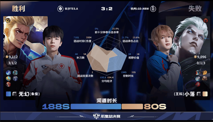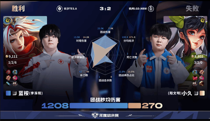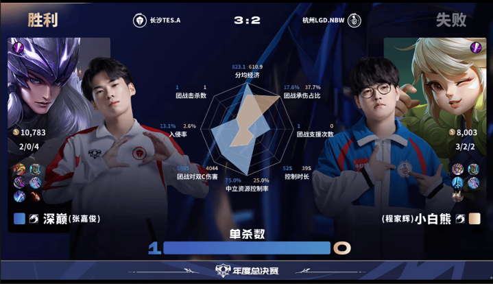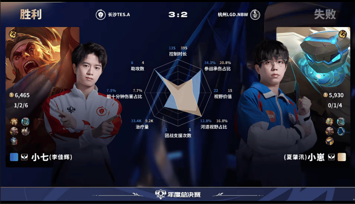 TES.A/LGD第五局数据对比: 深巅马超破釜沉舟多维领先小白熊